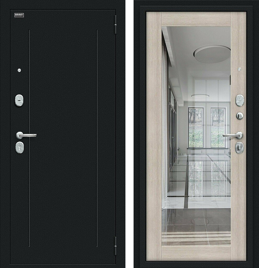 Входная дверь Bravo Флэш 205x96 Букле черное/Cappuccino Veralinga правое открывание