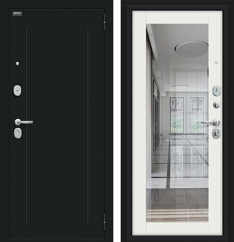 Входная дверь Bravo Флэш 205x96 Букле черное/Off-white левое открывание