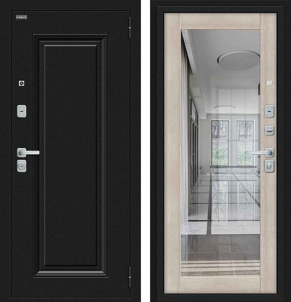 Входная дверь Bravo Флэш МФ/BChrome 205x86 Букле черное/Cappuccino Melinga левое открывание