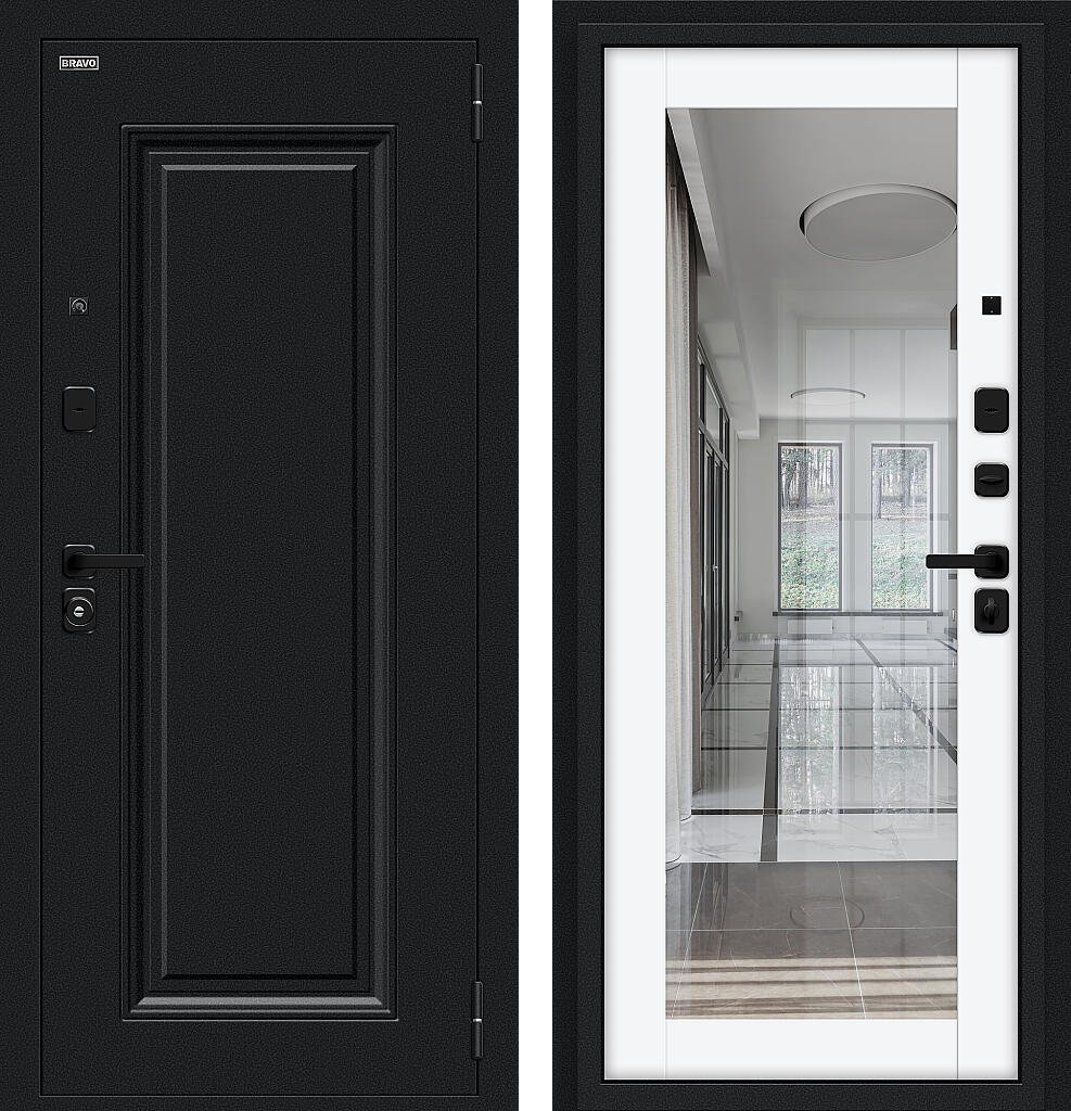 Входная дверь Bravo Флэш МФ/SBlack 205x86 Букле черное/White Silk левое открывание