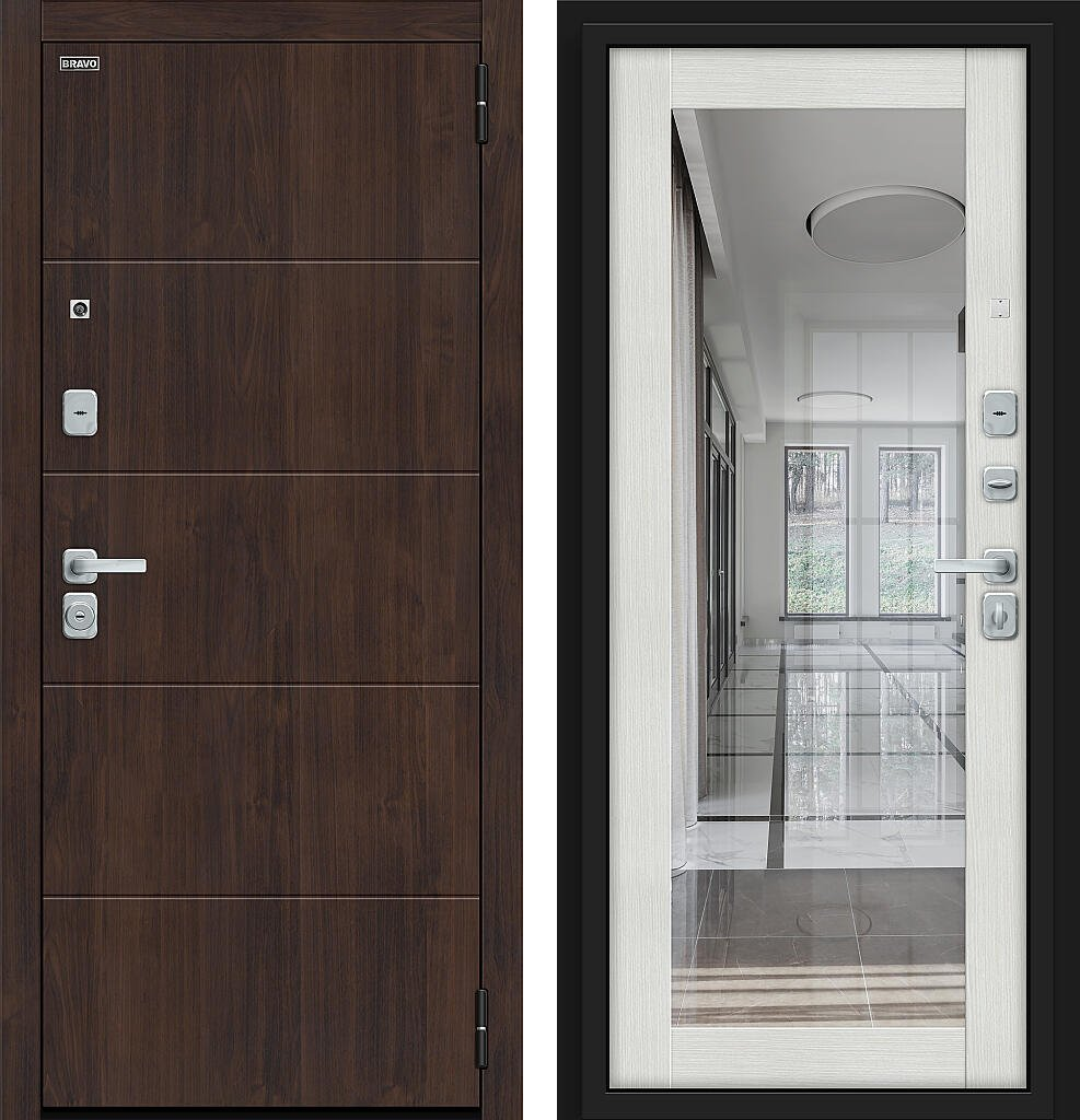 Входная дверь Bravo Флэт/BChrome 205x96 Almon/Bianco Melinga левое открывание