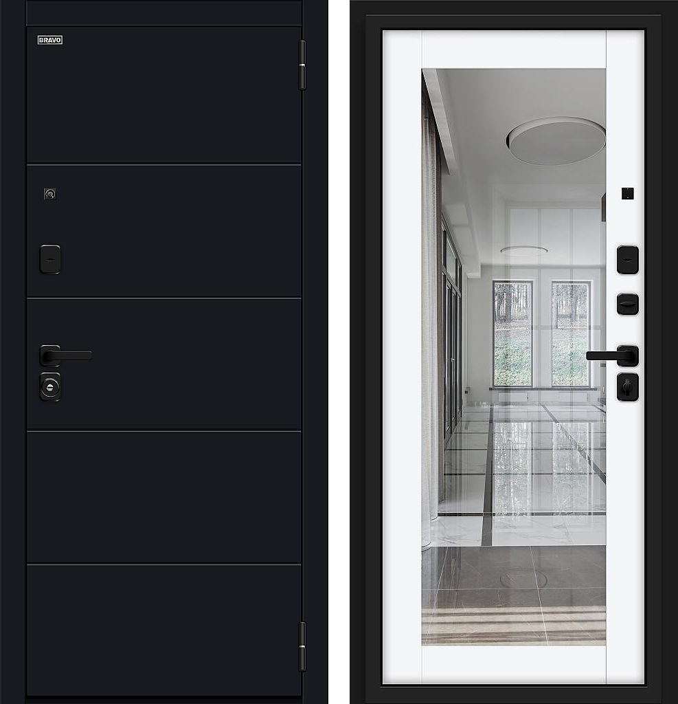 Входная дверь Bravo Флэт/SBlack 205x96 Black Shell/White Silk левое открывание