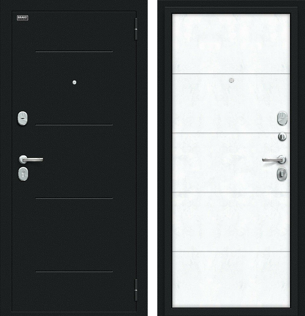 Входная дверь Bravo Граффити-1 205x86 Букле черное/Snow Art левое открывание