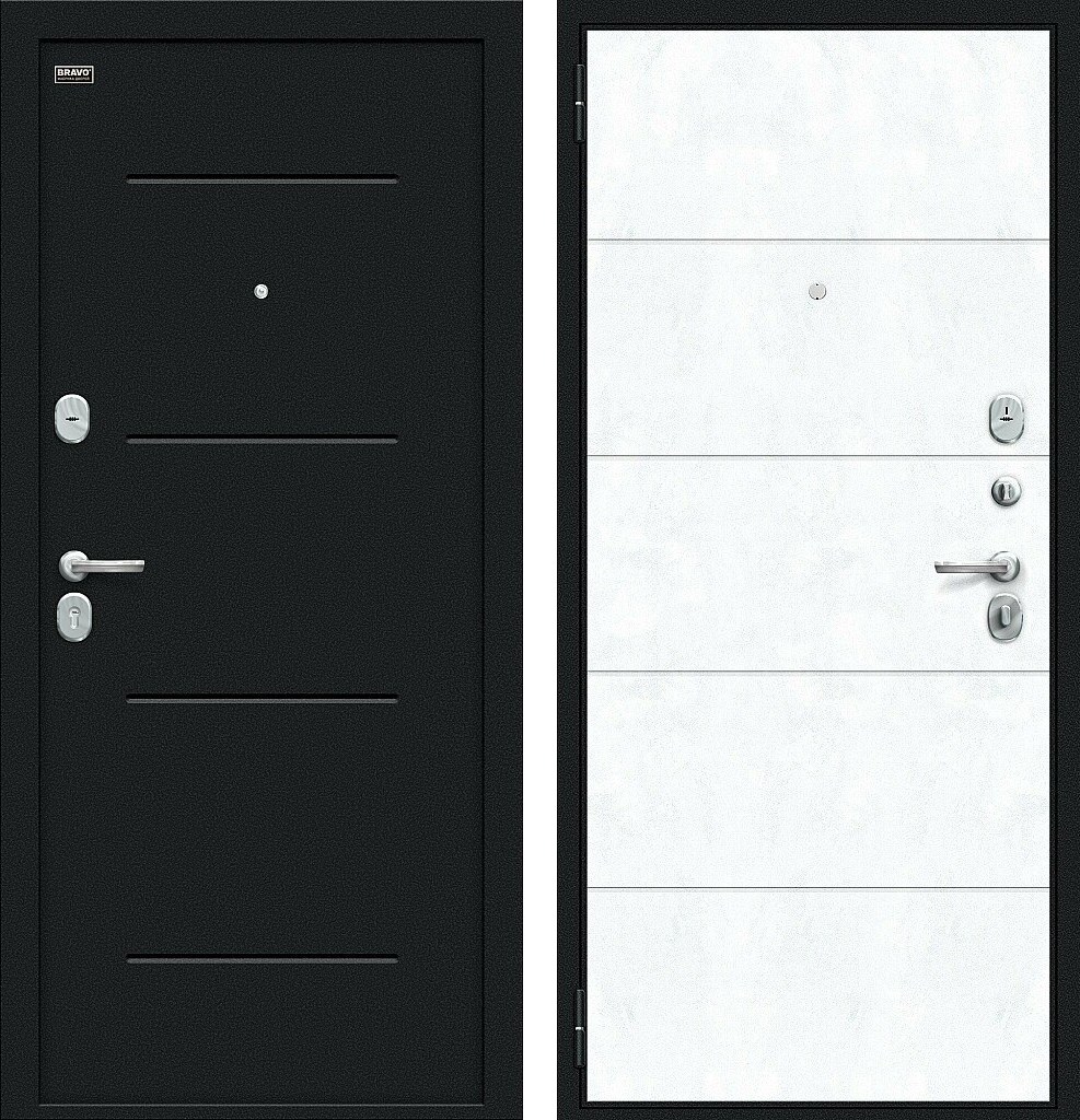 Входная дверь Bravo Граффити-1 Инсайд 205x96 Букле черное/Snow Art левое открывание