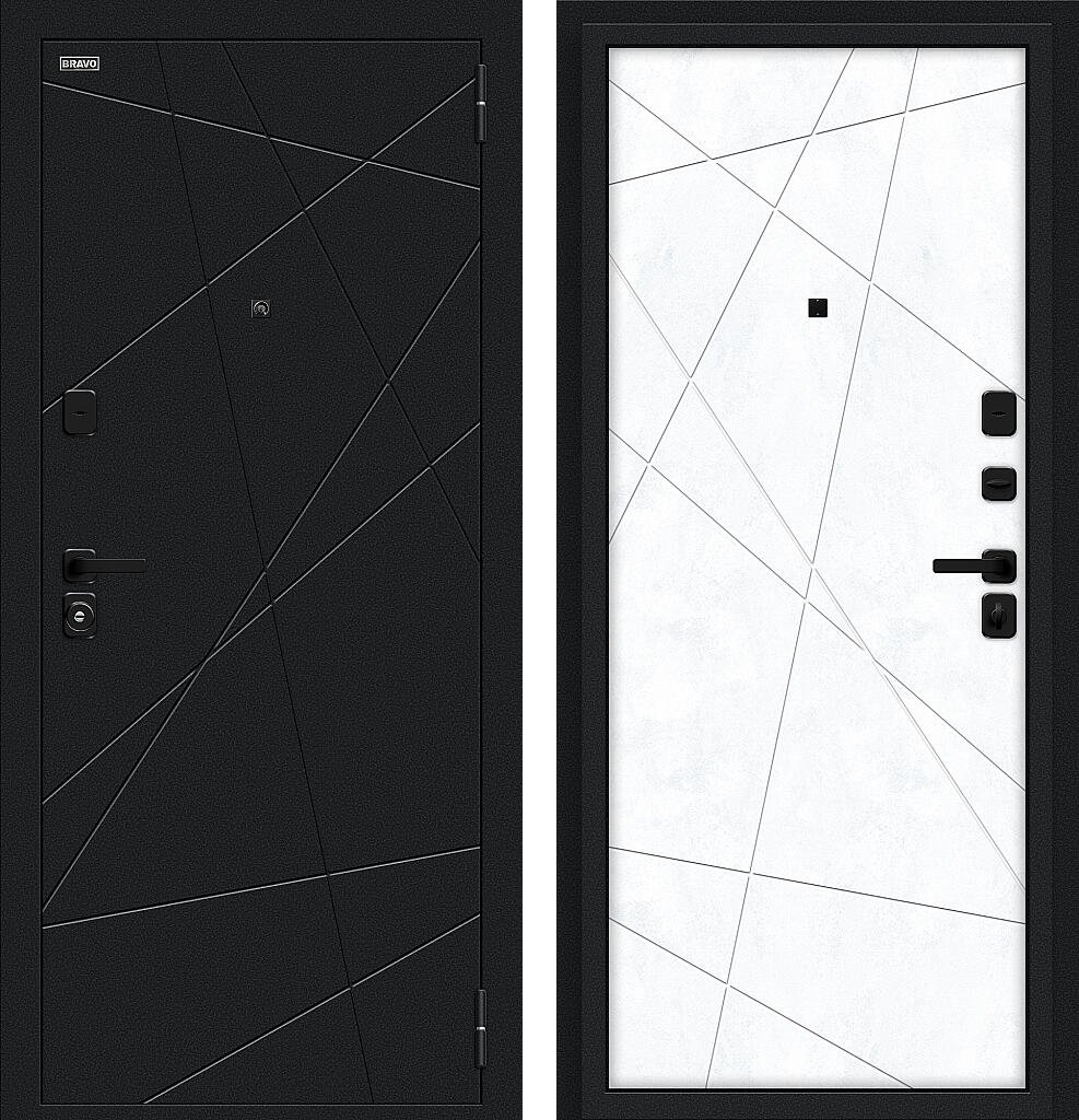 Входная дверь Bravo Граффити-5/SBlack 205x86 Букле черное/Snow Art левое открывание