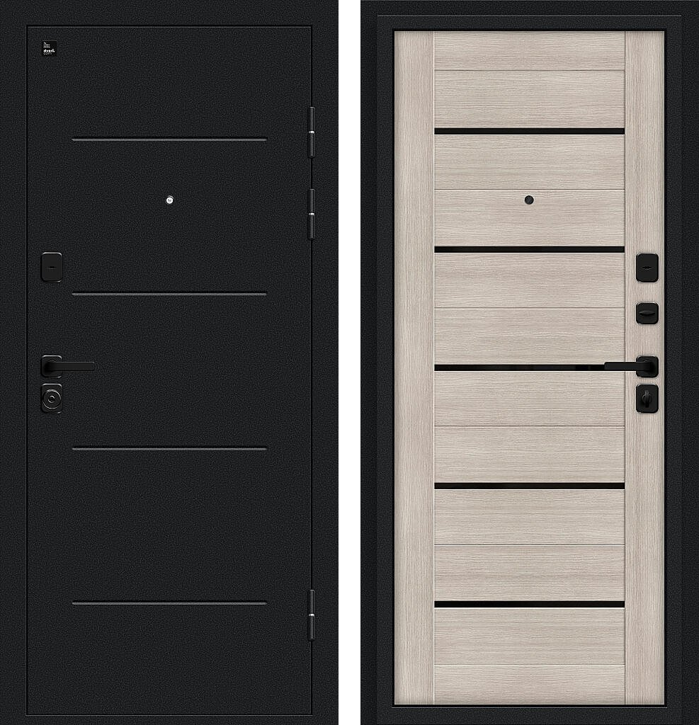 Входная дверь Bravo Грид 205x96 Букле черное/Cappuccino Melinga правое открывание