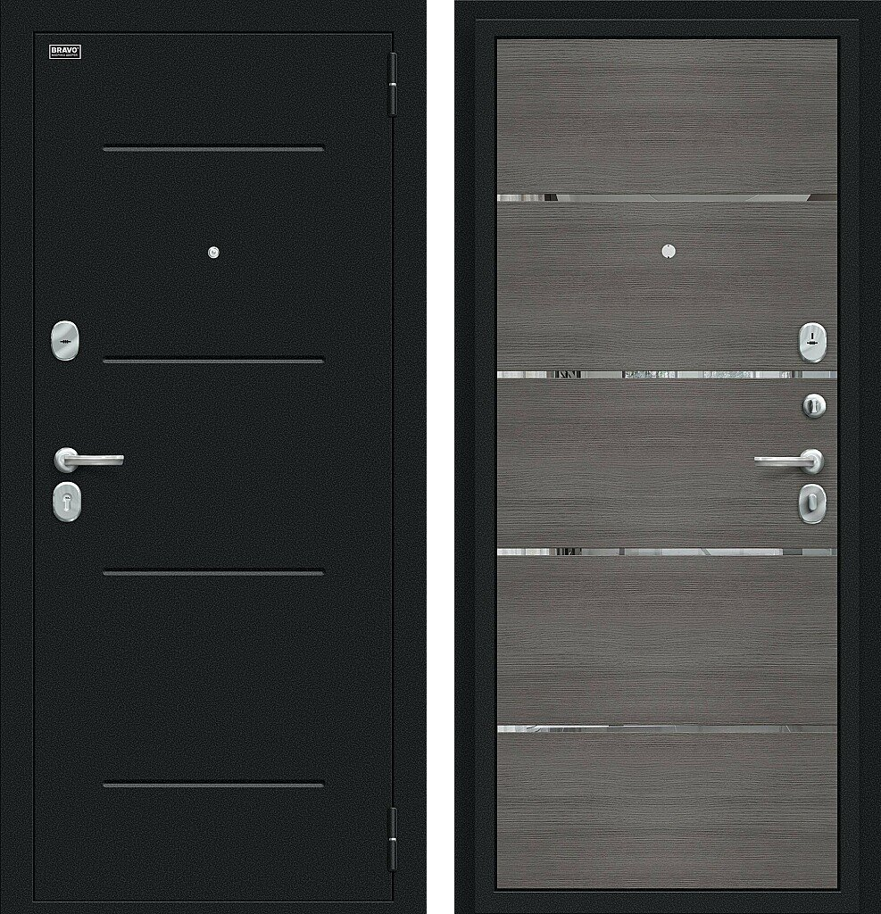 Входная дверь Bravo Лайн 205x86 Букле черное/Grey Melinga левое открывание