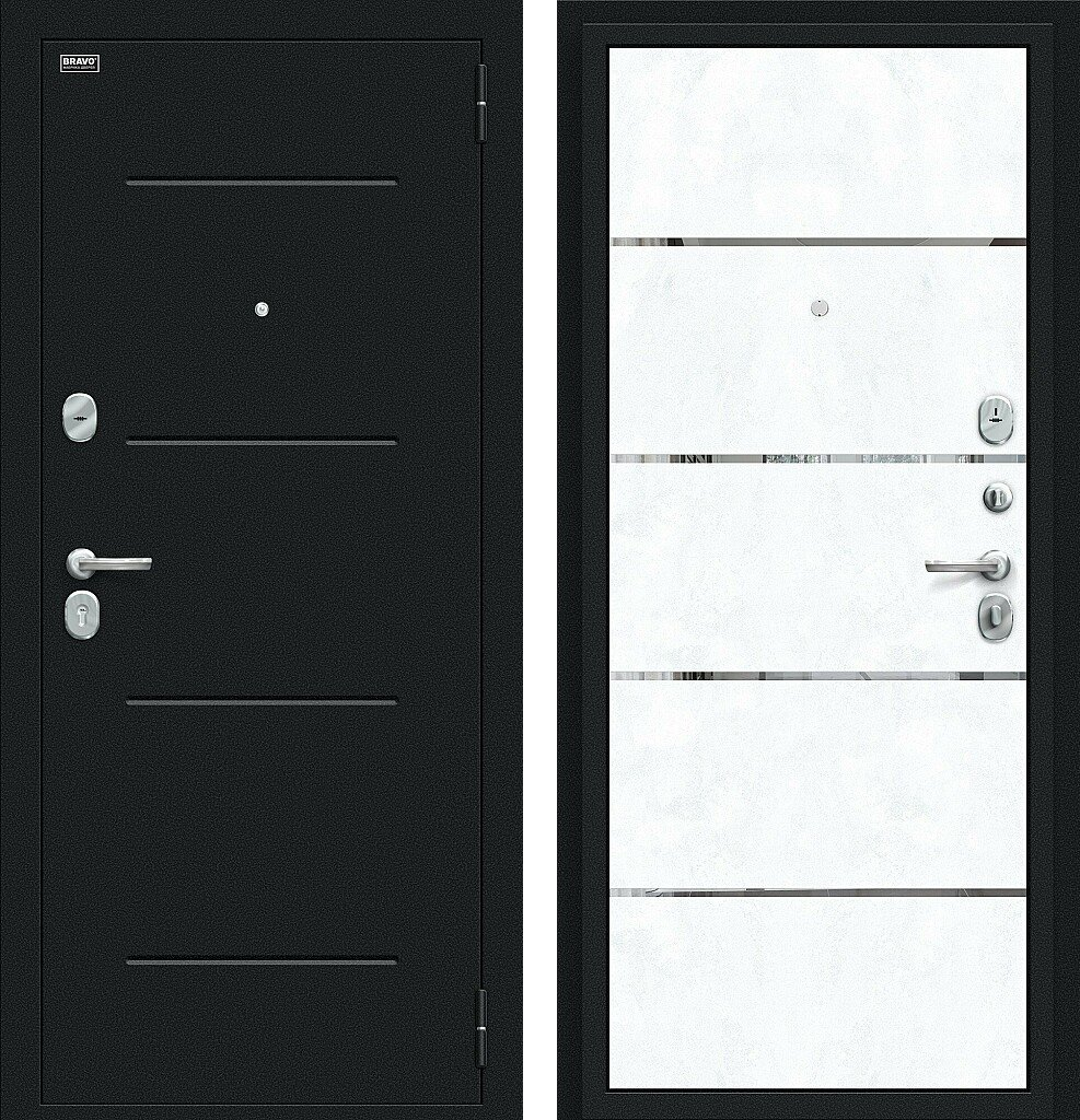 Входная дверь Bravo Лайн 205x86 Букле черное/Snow Art правое открывание