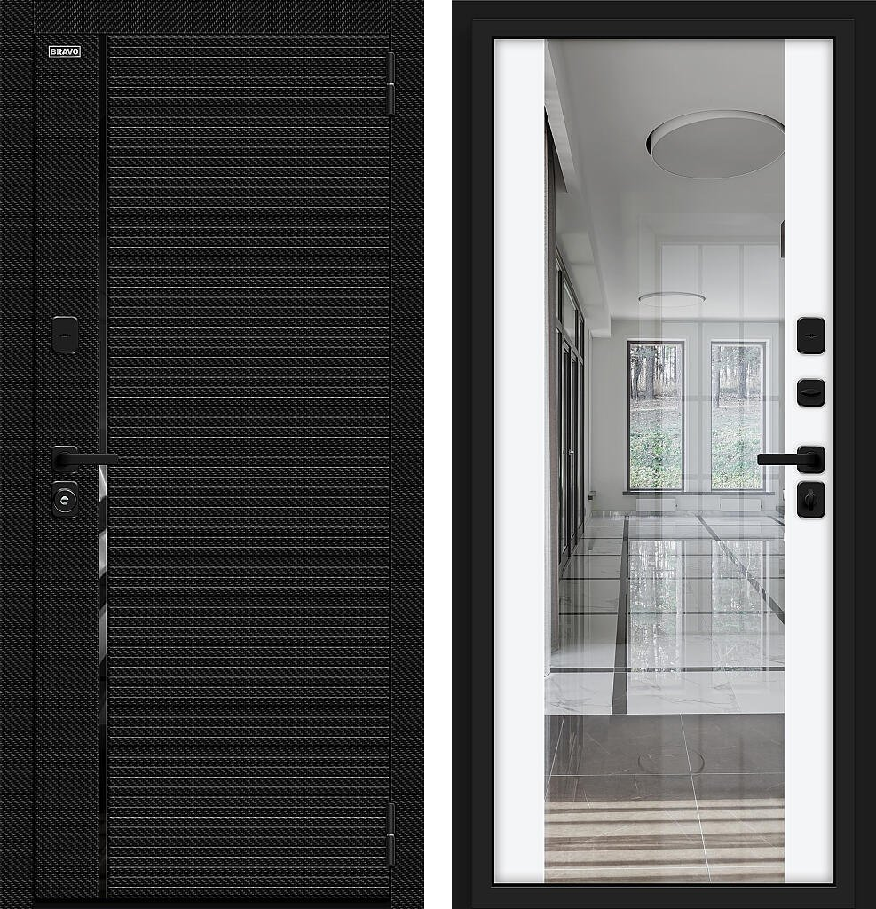 Входная дверь Bravo Лайнер/SBlack 205x96 Black Carbon/White Silk левое открывание