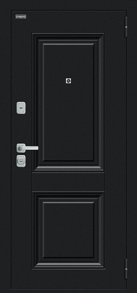 Входная дверь Bravo Некст МФ/BChrome 205x86 Букле черное/Cappuccino Melinga левое открывание