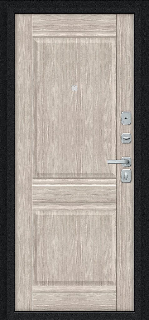 Входная дверь Bravo Некст МФ/BChrome 205x86 Букле черное/Cappuccino Melinga правое открывание
