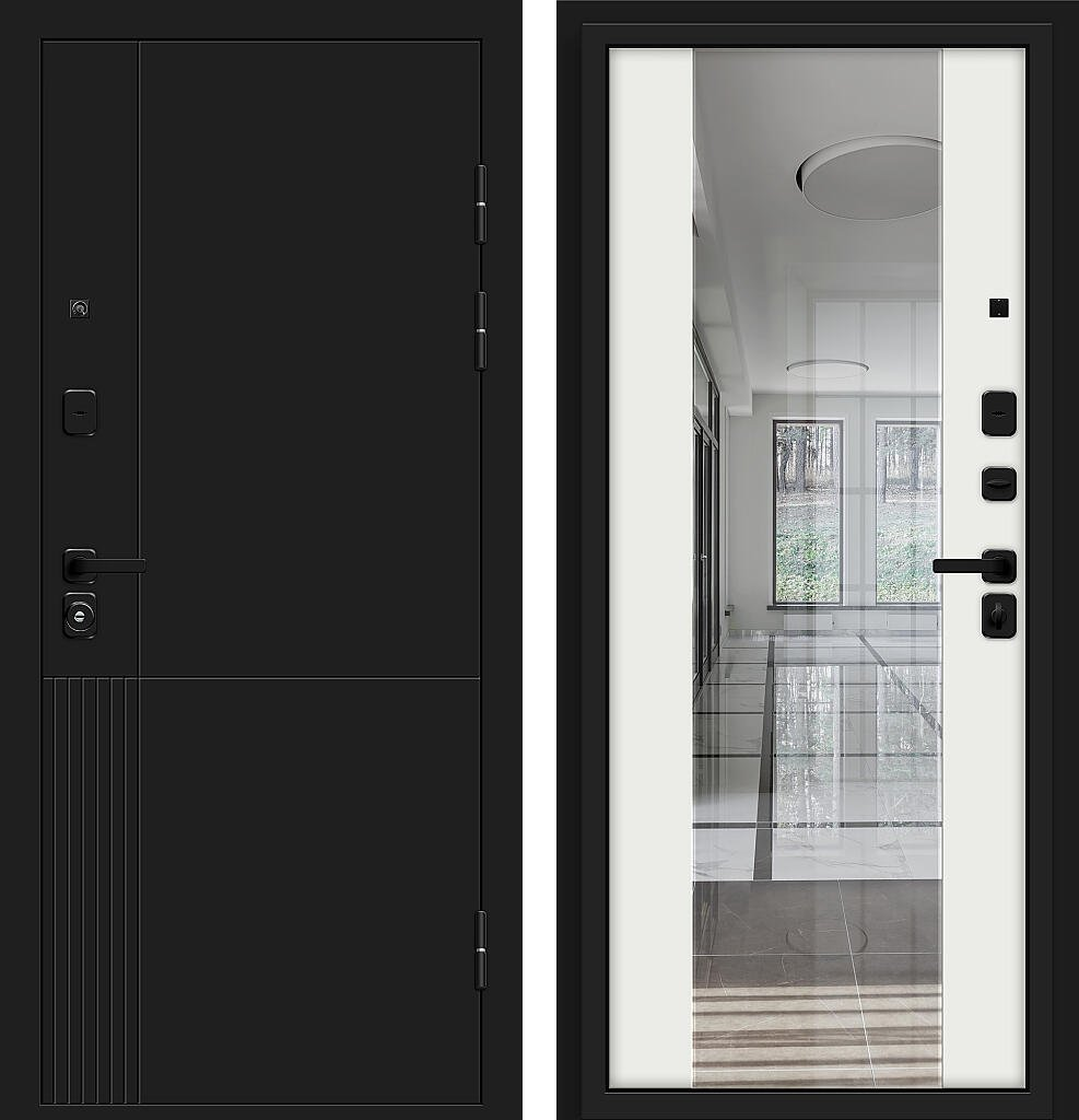 Входная дверь Bravo Optim Z-2 Нео Зеркало 205x86 Муар черный/Белый правое открывание