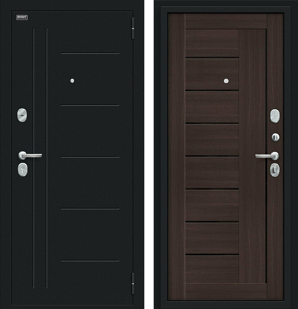 Входная дверь Bravo Проф 205x86 Букле черное/Wenge Veralinga правое открывание