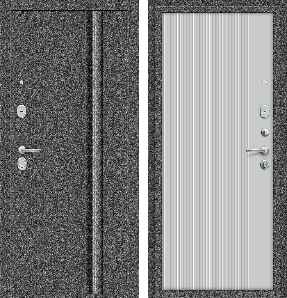 Входная дверь Bravo Тайга-9 Вертикаль 205x96 Антик Серебряный/Серый правое открывание