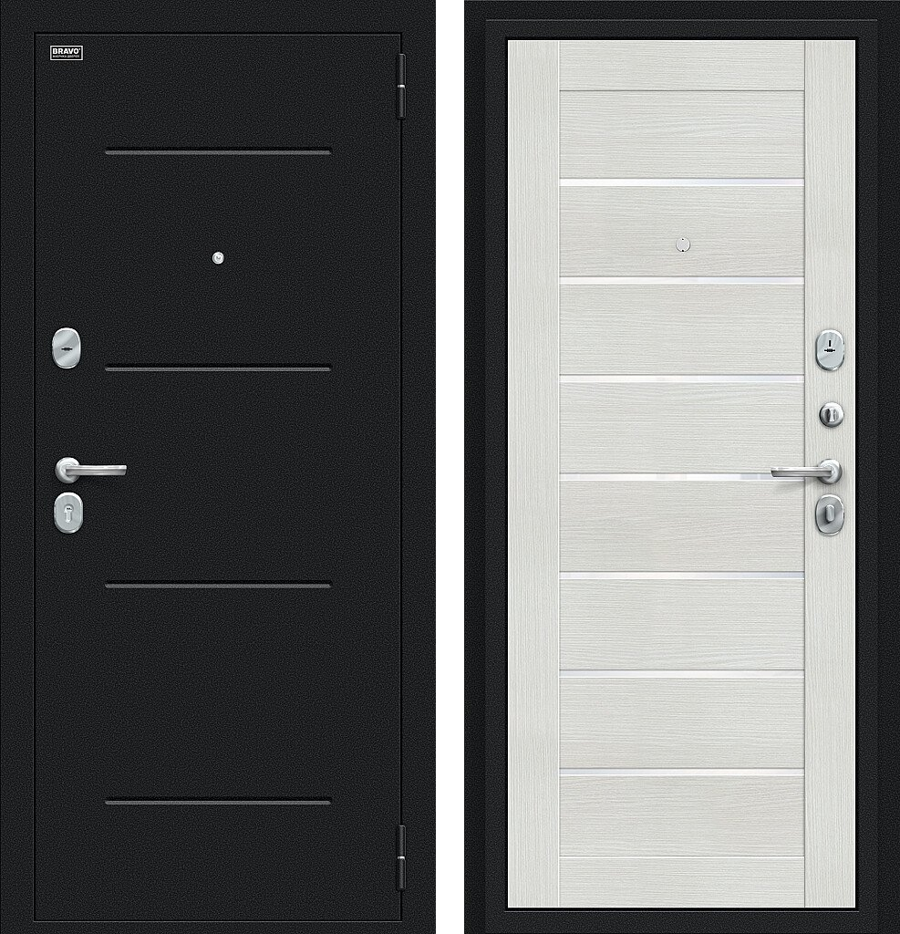 Входная дверь Bravo Техно 205x96 Букле черное/Bianco Veralinga правое открывание