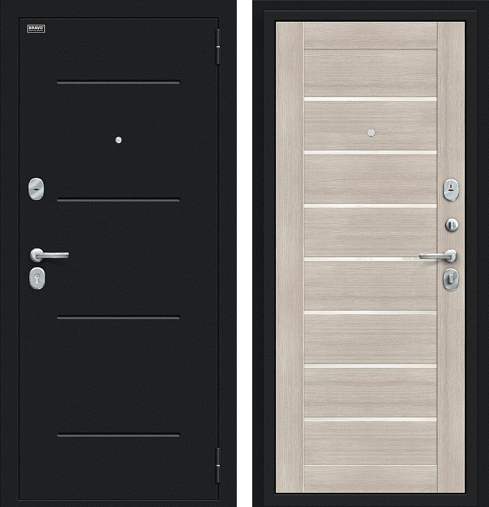 Входная дверь Bravo Техно 205x96 Букле черное/Cappuccino Veralinga левое открывание