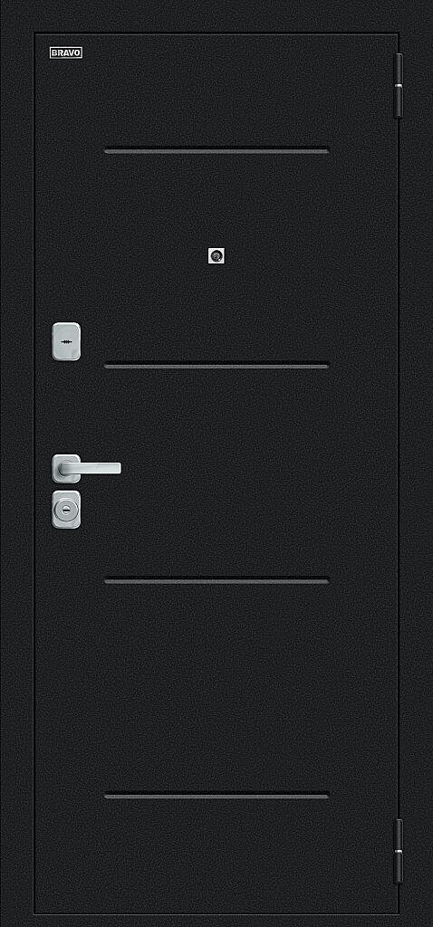 Входная дверь Bravo Техно/BChrome 205x96 Букле черное/Bianco Melinga правое открывание