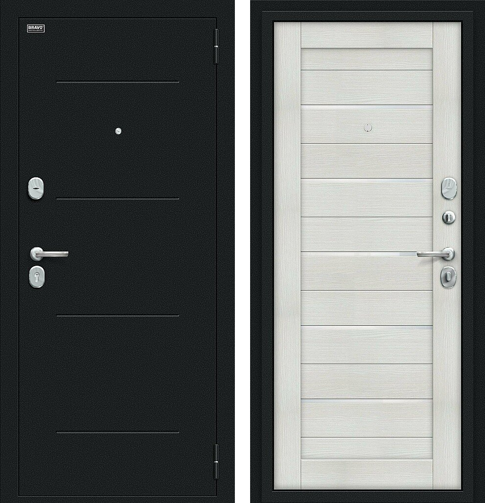 Входная дверь Bravo Техно Kale 205x96 Букле черное/Bianco Veralinga левое открывание