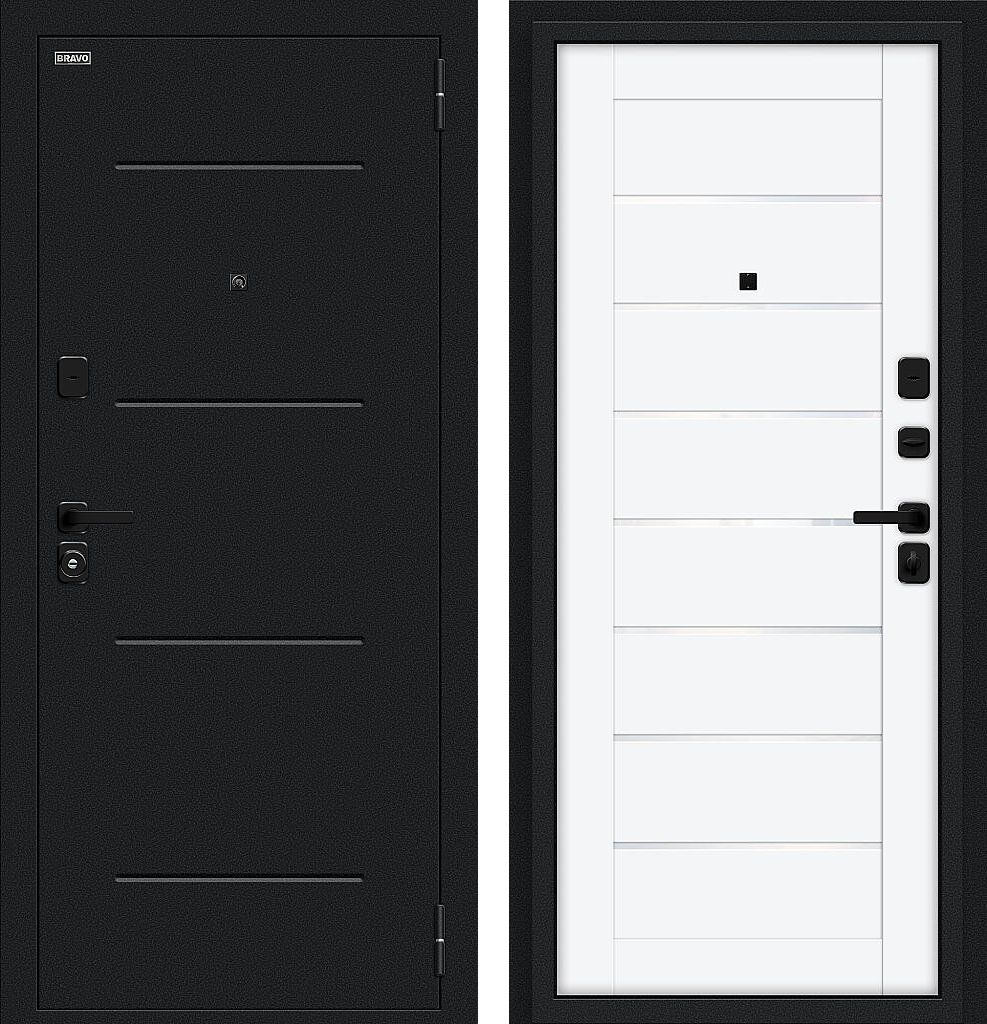 Входная дверь Bravo Техно/SBlack 205x96 Букле черное/White Silk правое открывание