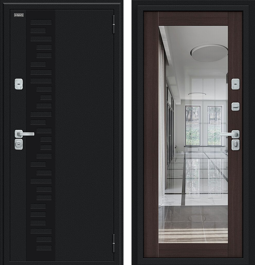 Входная дверь Bravo Thermo Флэш Декор-2 205x86 Букле черное/Wenge Veralinga правое открывание