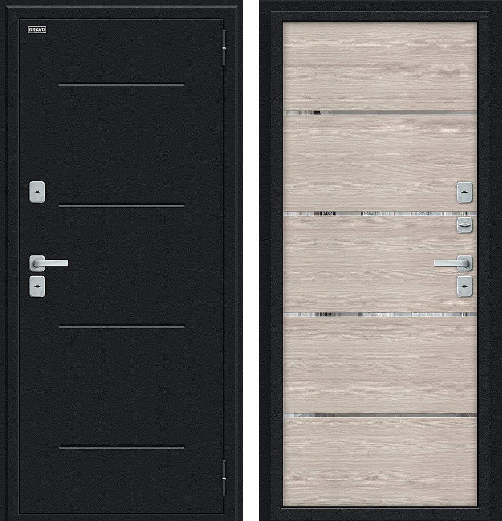 Входная дверь Bravo Thermo Лайн/BChrome 205x96 Букле черное/Cappuccino Melinga правое открывание