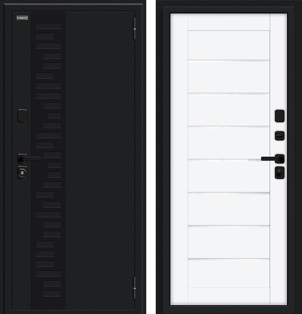 Входная дверь Bravo Thermo Техно Д2/SBlack 205x86 Букле черное/White Silk правое открывание
