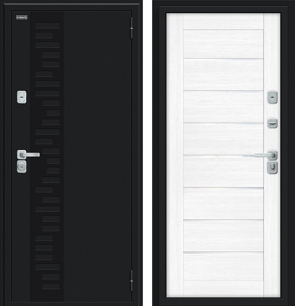 Входная дверь Bravo Thermo Техно Декор-2 205x86 Букле черное/Snow Melinga правое открывание