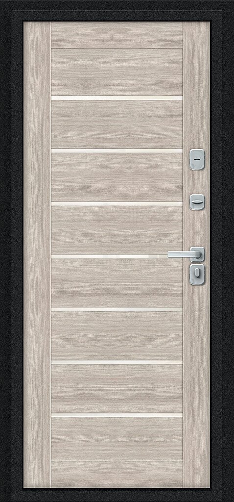 Входная дверь Bravo Thermo Техно Декор-2 205x86 Букле черное/Cappuccino Veralinga левое открывание