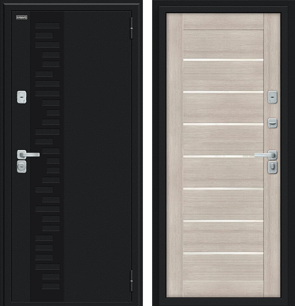 Входная дверь Bravo Thermo Техно Декор-2 205x96 Букле черное/Cappuccino Veralinga левое открывание