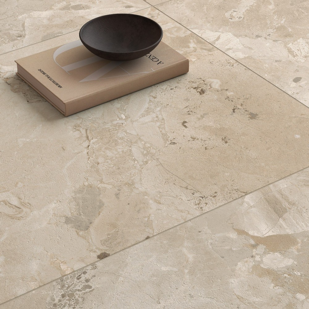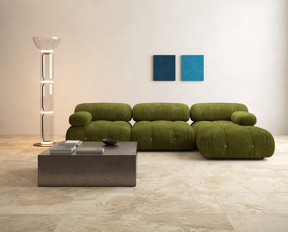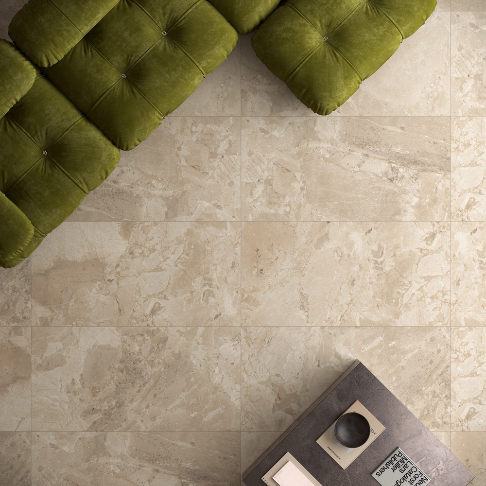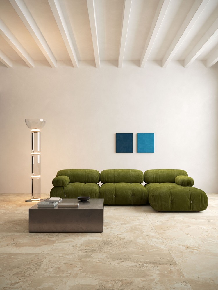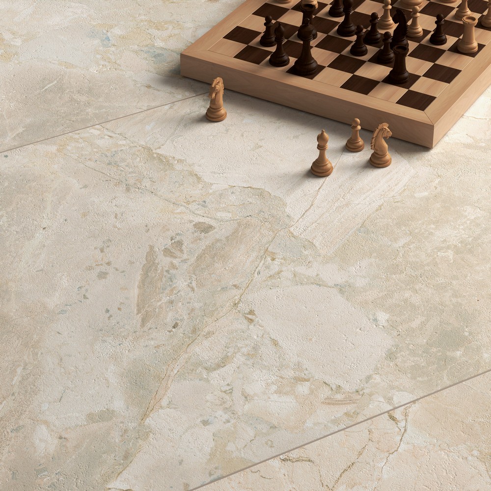 Вивальди адаптирует этот материал под запросы сегодняшнего дня, предлагая два изысканных цвета — Уайт и Крим — в универсальном формате 60x120 см.