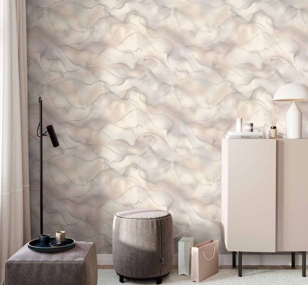 Текучий мотив коллекции Winner плавно растекается по стене, создавая единое бесшовное полотно во всю стену. Мягкие переходы цветов, созданные дизайнером-художником, дарят ощущение легкости и гармонии.