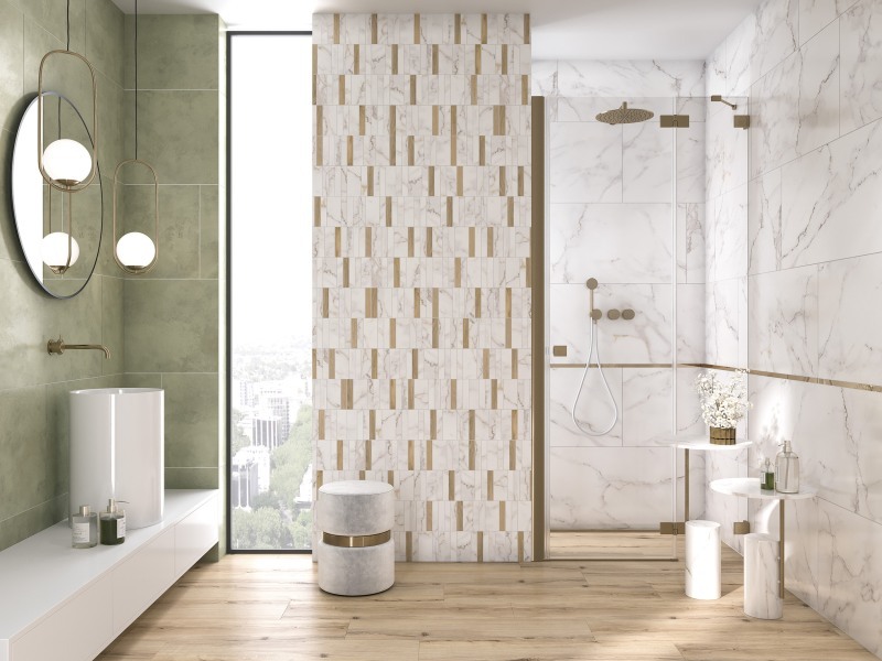 В Wonder вошли элементы: мозаика, напольная плитка. Базовый размер: 44.8x89.8 см.