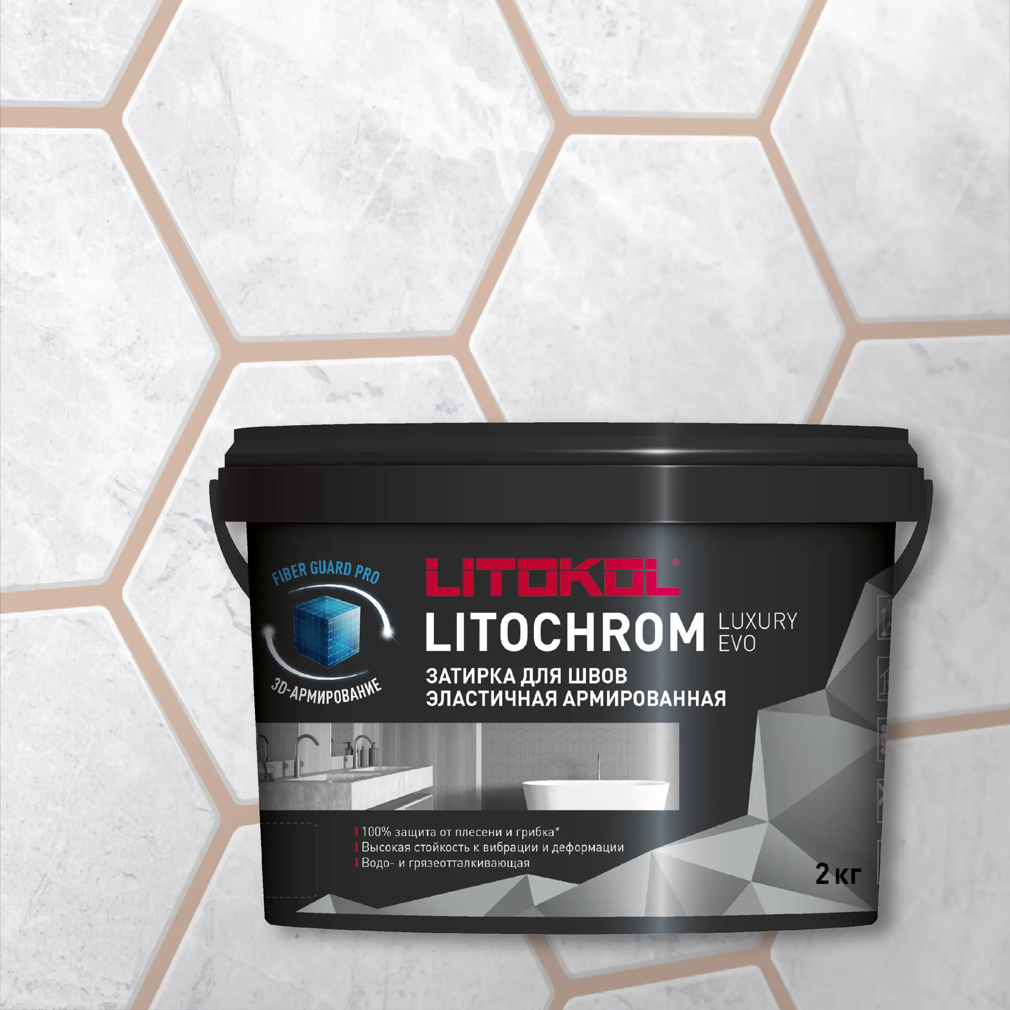 LITOCHROM LUXURY EVO — эластичная водоотталкиваю-щая цементно-полимерная затирка с защитной системой LitoProtect® для заполнения межплиточных швов шириной 1–10 мм включительно. Предназначена для затирки швов при облицовке стен и полов керамической плиткой, стеклянной мозаикой, керамогранитом, натуральным камнем, агломератом.