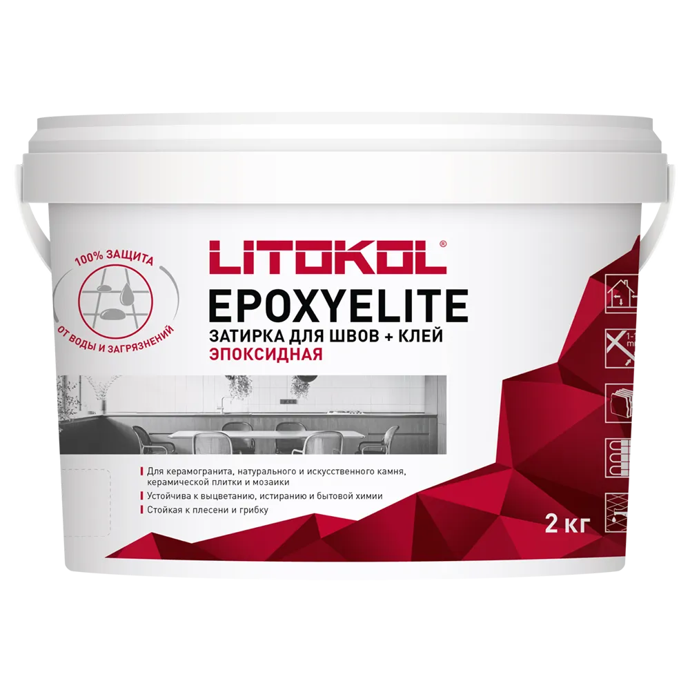 Эпоксидная затирка + клей для различных видов облицовки. Заполнение межплиточных швов шириной 1-15 мм, укладка плитки и мозаики.