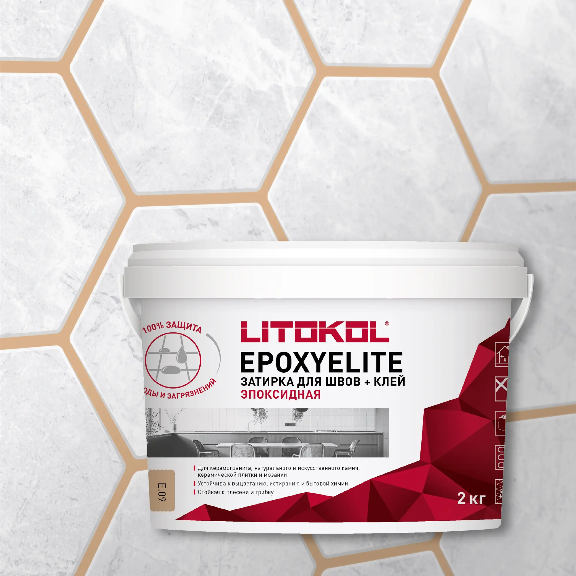 Эпоксидная затирка + клей для различных видов облицовки. Заполнение межплиточных швов шириной 1-15 мм, укладка плитки и мозаики.