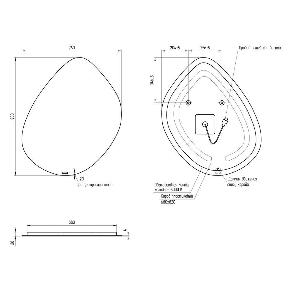Зеркало Cersanit Eclipse Smart с подсветкой органик 64152 76х90 см