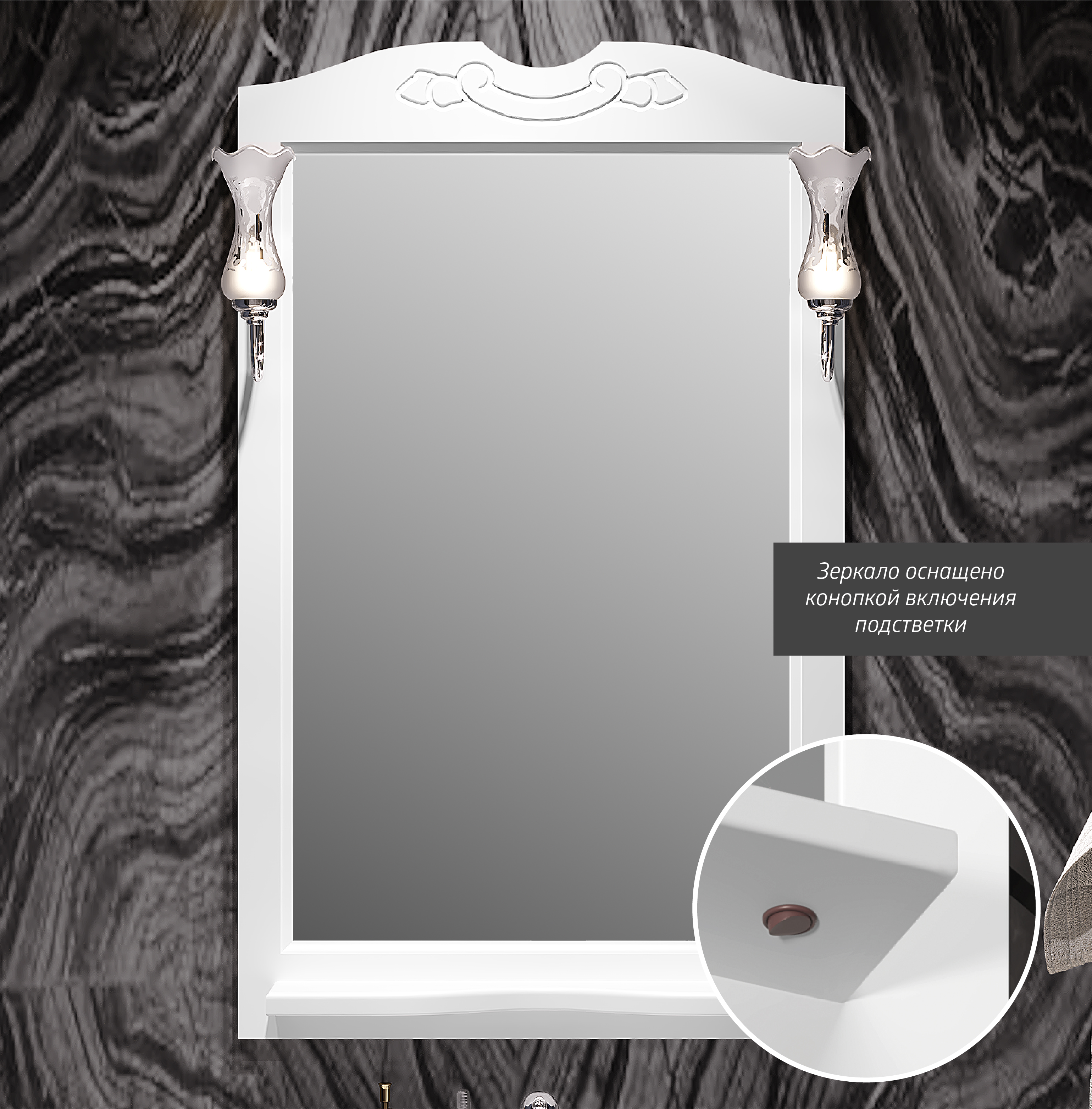 Зеркало Opadiris Брунелла 65 белый матовый с выключателем 00-00007035