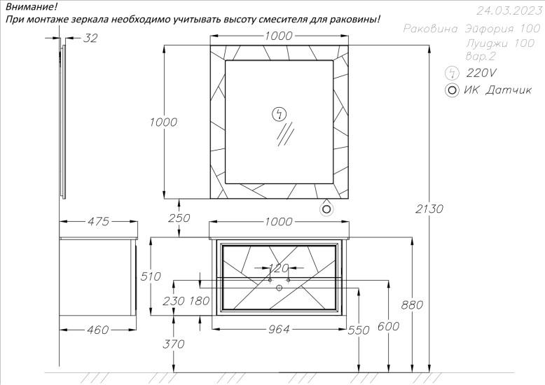 Зеркало Opadiris Луиджи 100 серый матовый 00-00006550