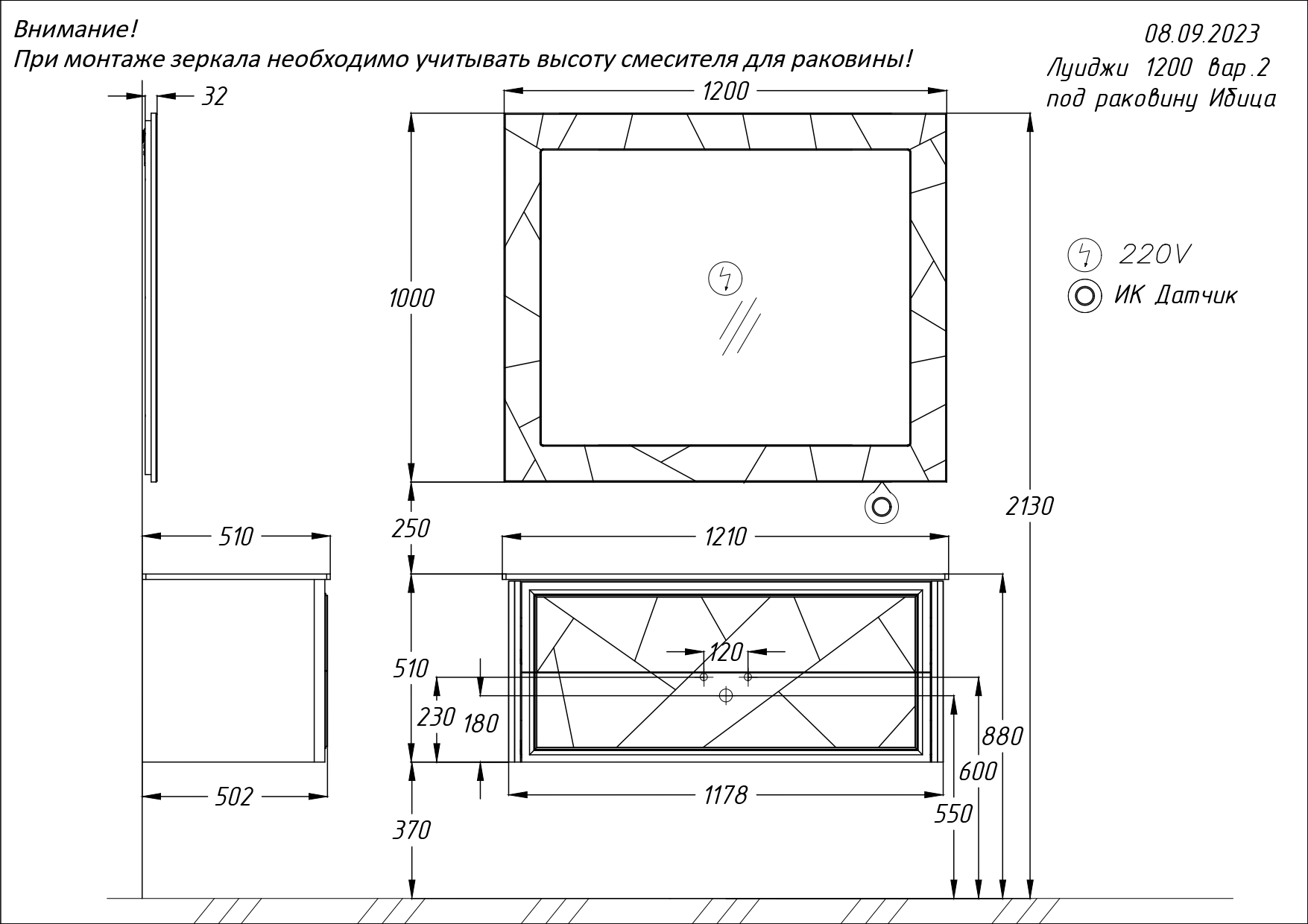 Зеркало Opadiris Луиджи 120 белый матовый 00-00007193
