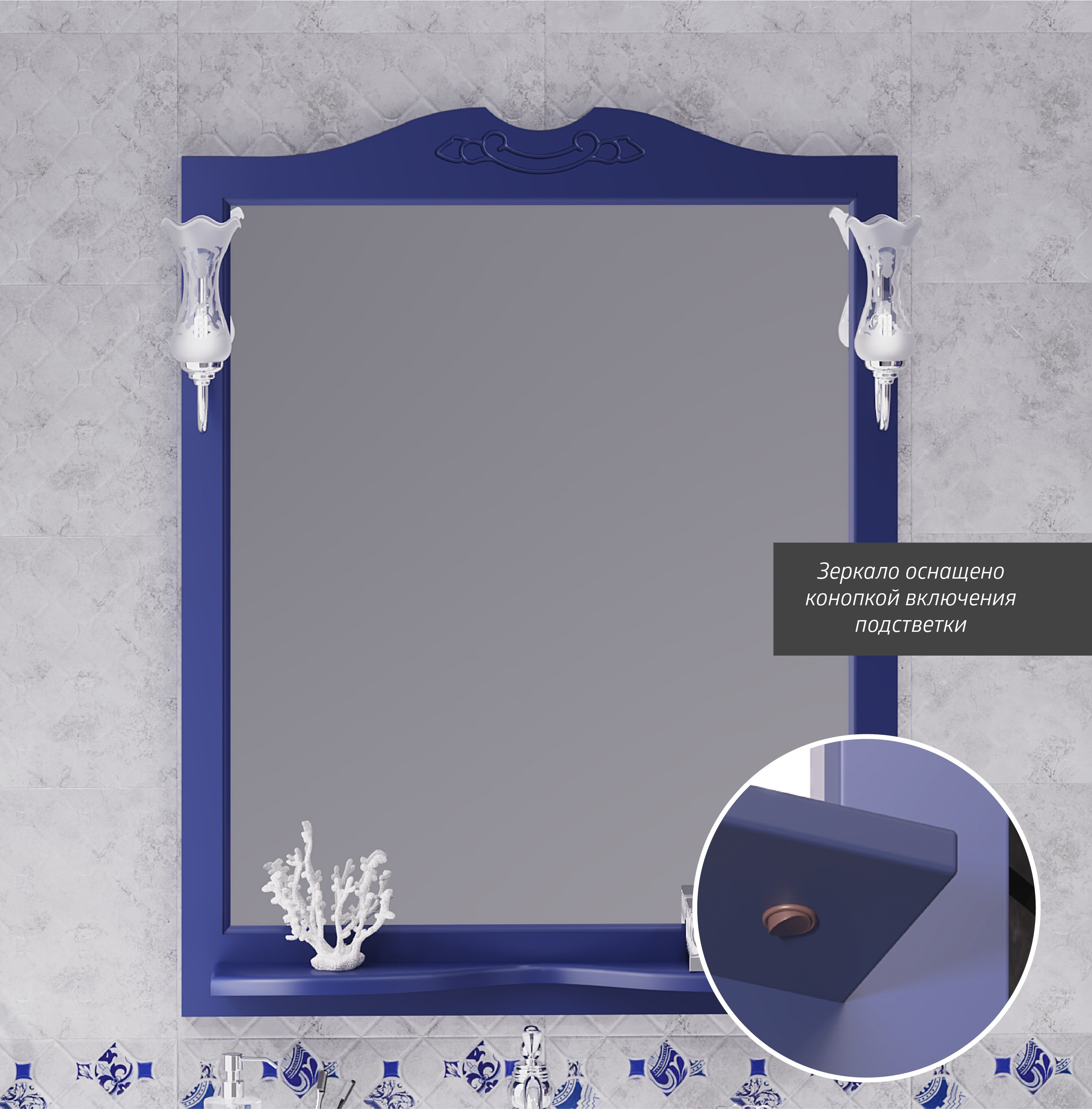 Зеркало Opadiris Валери 85 сапфир с выключателем 00-00007040