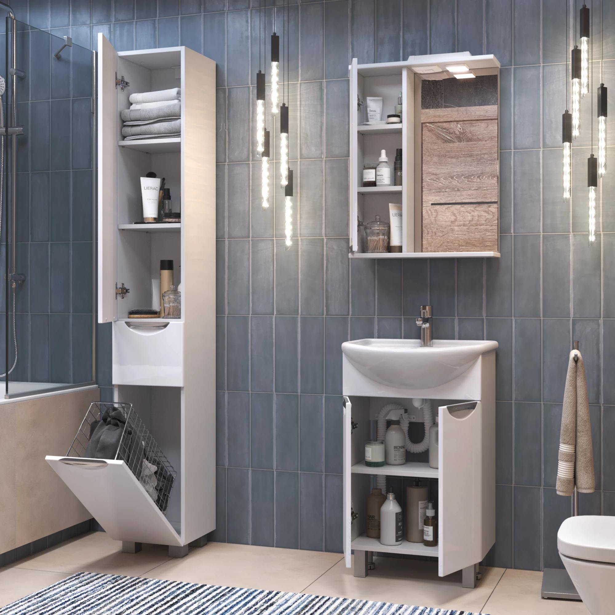 Комплектация: 2 полки ЛДСП; петли с механизмом доводчика, 1 светодиодный светильник, включатель с розеткой.