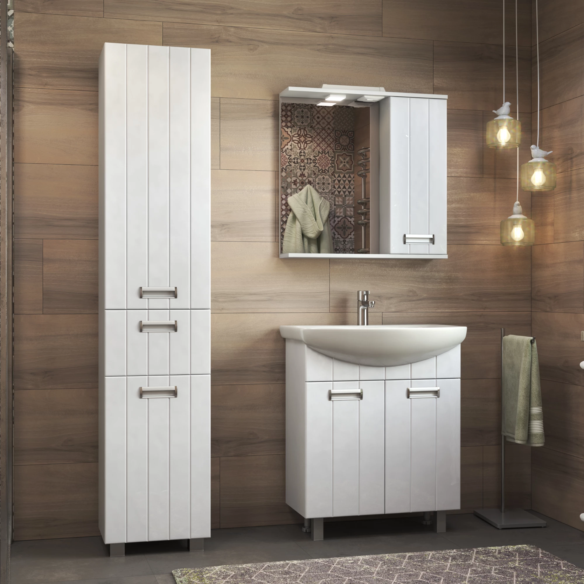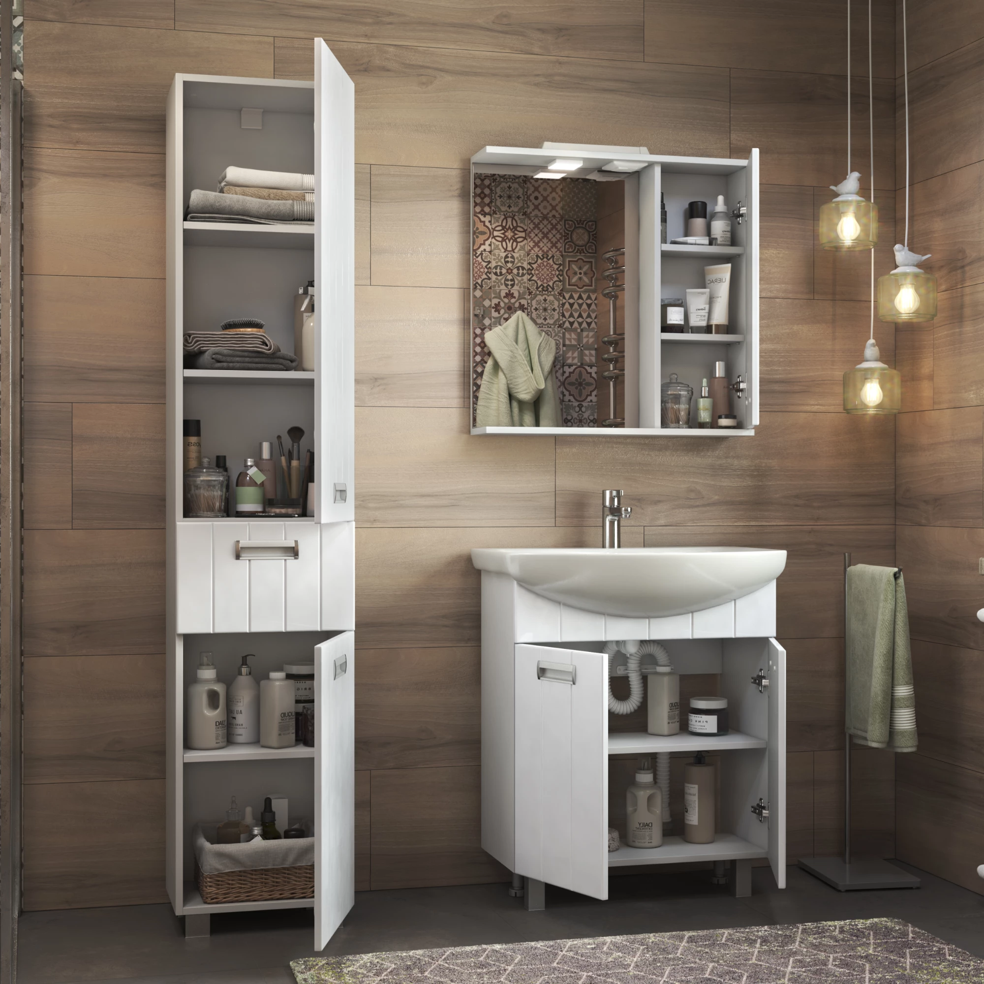 Комплектация: 1 дверца, 2 полки ЛДСП; петли с механизмом доводчика, 1 светодиодный светильник, включатель с розеткой.